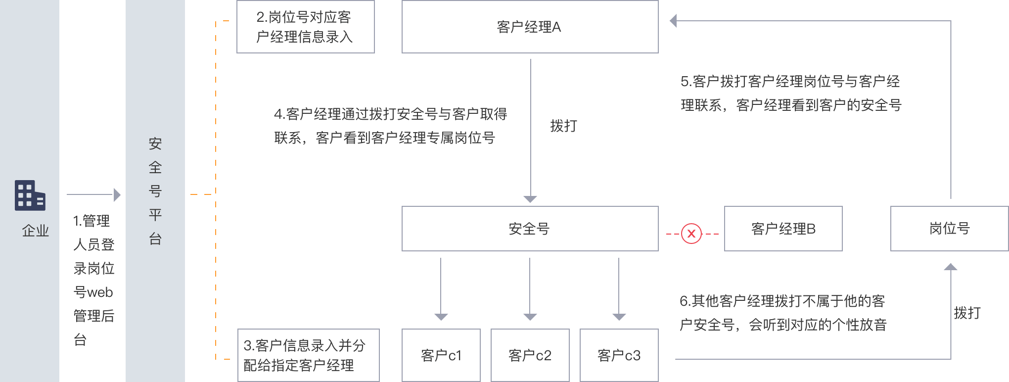 用安全号碼保護用戶通(tōng)信信息,保證用戶不受影(yǐng)響的前提下,撥打安全号與用戶通(tōng)信,可(kě)屏蔽用戶真實手機号,防止信息洩露,并且可(kě)對通(tōng)信全程監控管理(lǐ)